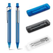 Conjunto de caneta e lapiseira importadas, metálicas. Personalização a laser. Disponível nas cores preto, prata, grafite e champagne. Incluso estojo acartonado. Venda sob disponibilidade de estoque.